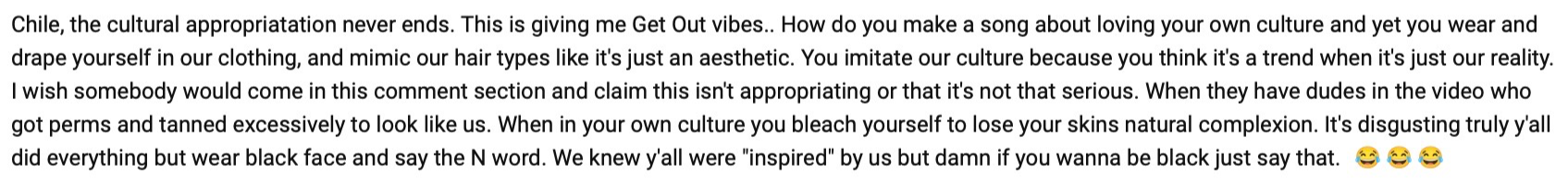 Sherliza Moé is a YouTuber who covers topics like cultural appropriation and racism in K-pop. In her video about colourism in Asia, she referenced a song called Drip by Jessi, another Korean-American idol, which Jay Park was featured on: "Diamonds blue like a Crip, yeah." The lyrics are referring to the Los Angeles street gang, the Crips. So many lives have been lost to gang violence. It's so misplaced for her to make a reference to this, when she has absolutely no connection to it. I would argue that when it comes to people like Jay Park and Jessi, we can't justify their actions by bringing up the fact that South Korea is a homogenised society because they didn't grow up there. Eric Nam was born in Atlanta, Georgia in 1988 and is two years younger than Jay Park, and yet he doesn't mimic black culture and try to reclaim it as his own. I don't think people like Jay Park or Jessi have malicious intentions, but it's besides the point. It's embarrassing and tone deaf. Jay Park did a remix of Kendrick Lamar's DNA. The song is supposedly about being being proud of Korean culture, but the video is full of Koreans with afros and braids. Many viewers pointed out that if they wanted to show how proud they were of Korean culture, they could have shown things like hanbok, which is traditional Korean clothing. Instead, they're essentially dressing up as black people.